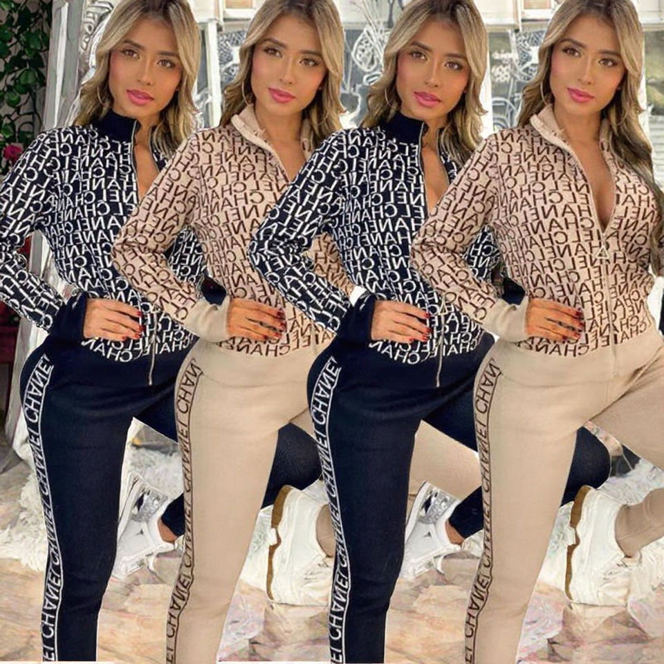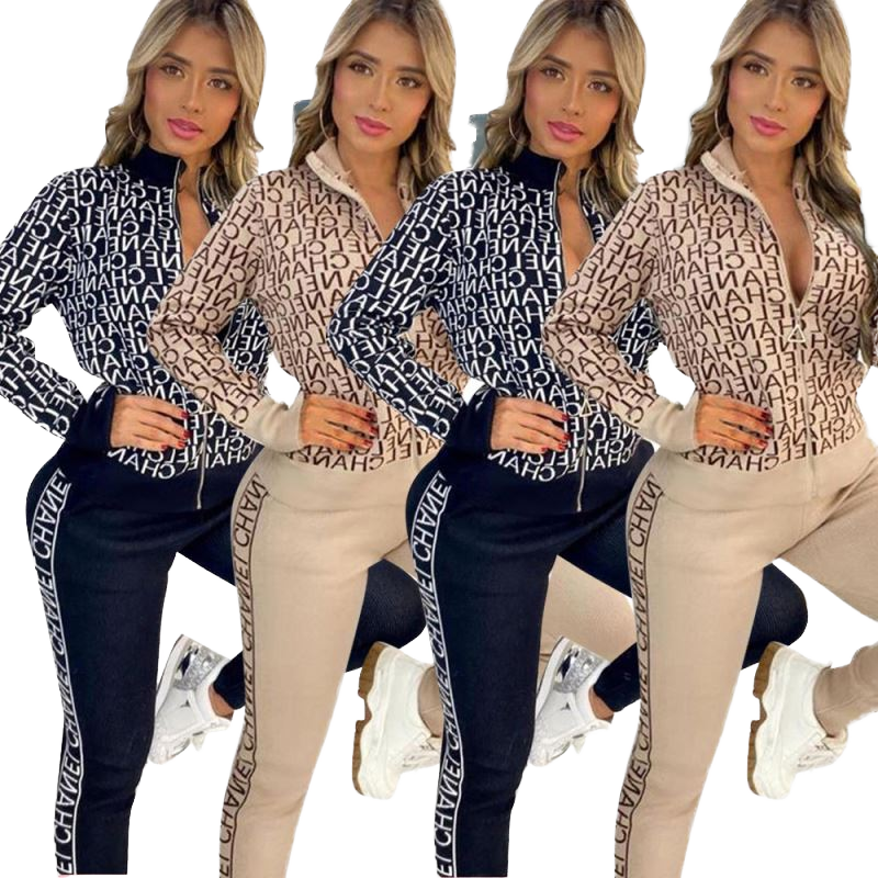 ชุดลำลองผู้หญิงแบรนด์ดัง ลายพิมพ์ดิจิทัล ผ้าโพลีเอสเตอร์ สำหรับฤดูหนาว ชุด 2 ชิ้น เสื้อแจ็คเก็ตซิปแขนยาว ระบายอากาศได้ดี