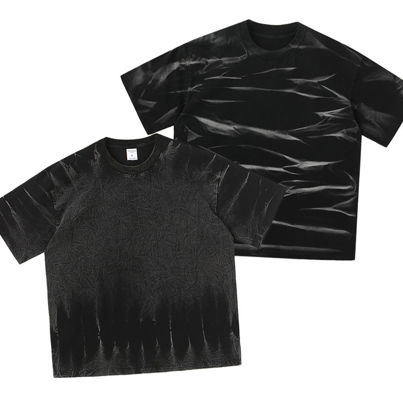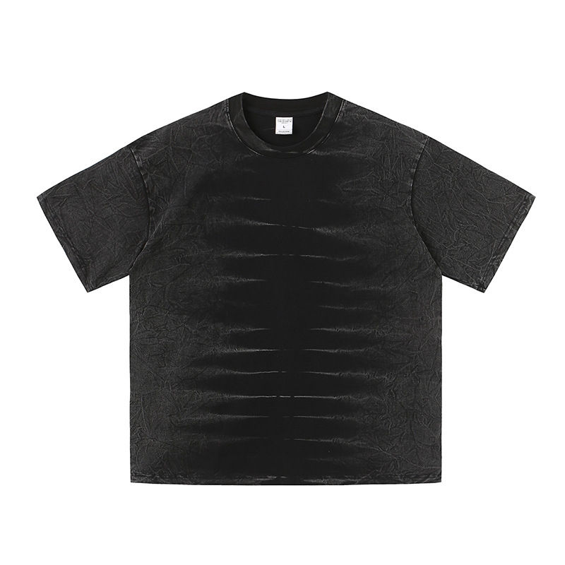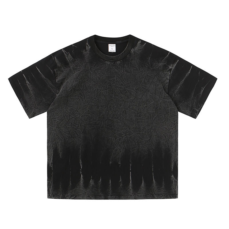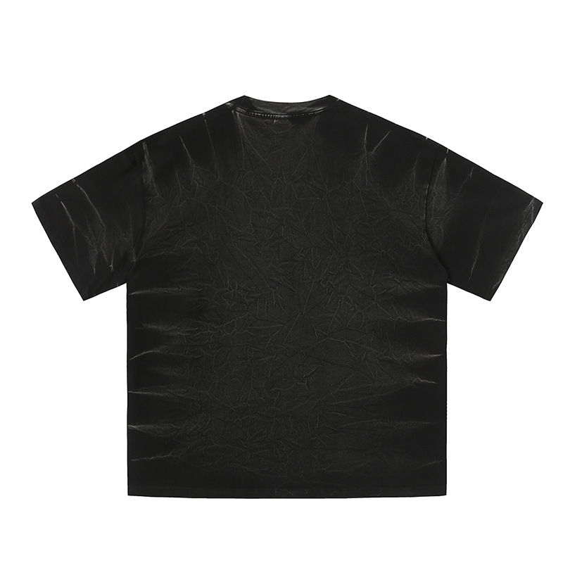 เสื้อยืดผู้ชายแบรนด์ดัง สไตล์เรโทรสุดเทรนดี้ สำหรับฤดูร้อน ดีไซน์ขาดๆ แบบสตรีทแฟชั่น ทรงหลวม คอวี ผ้าฝ้าย 100% น้ำหนัก 180 กรัม ผ้าไม่ยับ