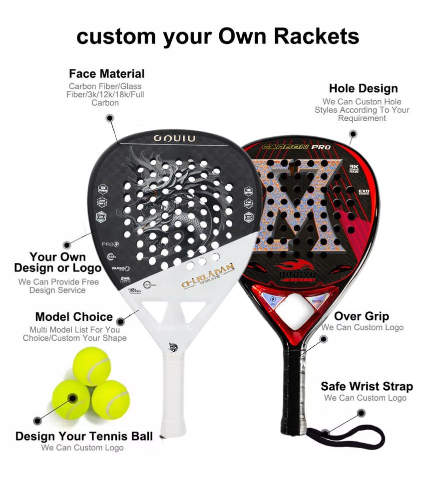 ไม้เทนนิสคาร์บอนไฟเบอร์3K/12K/18K ใหม่พร้อมแฟลช EVA โฟมและไม้พายด้ามจับคาร์บอนสำหรับเกม