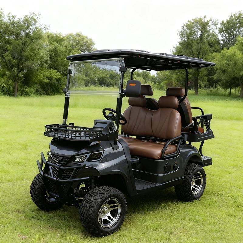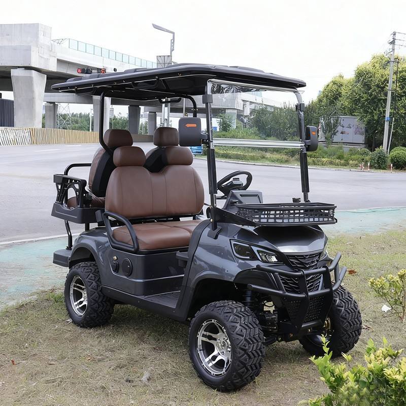 รถเข็นไฟฟ้าใหม่เอี่ยม 4000W 4 ที่นั่ง แบตเตอรี่ 100AH และยางออฟโรดขนาด 12 นิ้ว พนักพิงศีรษะสุดหรู รับประกัน 3 ปี ปรับแต่งได้ตามต้องการ (OEM) พร้อมชุดเครื่องมือ