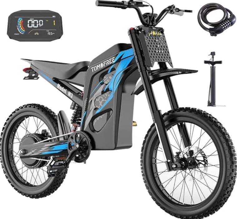 มอเตอร์ไซค์วิบากไฟฟ้าใหม่เอี่ยม 50 ไมล์ต่อชั่วโมง 6500 วัตต์, แบตเตอรี่ถอดได้ 72V 30Ah, มอเตอร์ไซค์ไฟฟ้าสำหรับผู้ใหญ่, ระยะทางสูงสุด 70 ไมล์