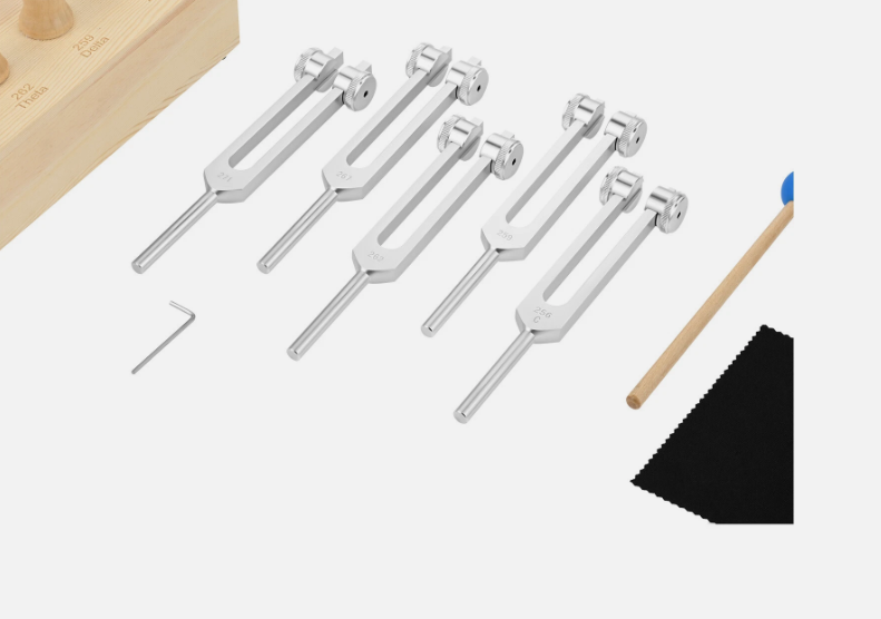 ชุดส้อมเสียงปรับจูนสมอง 5 ชิ้น ใหม่เอี่ยม สำหรับการบำบัดด้วย DNA การบำบัดด้วยเสียงจักระ ช่วยรักษาสุขภาพร่างกาย