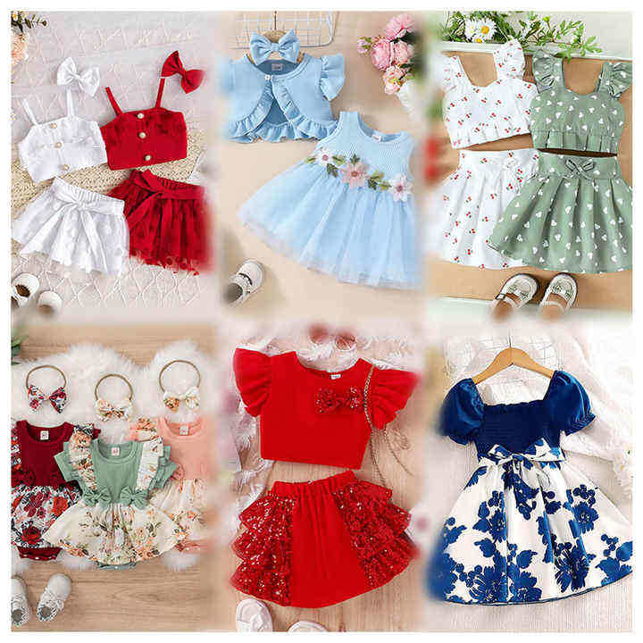 สินค้าใหม่ยกแพ็คขายส่งจำนวนมาก ชุดเดรสเด็ก เสื้อผ้าเด็กฤดูร้อน Ropa De Bebe จัดส่งแบบสุ่ม ชุดเดรสเด็กผู้หญิง