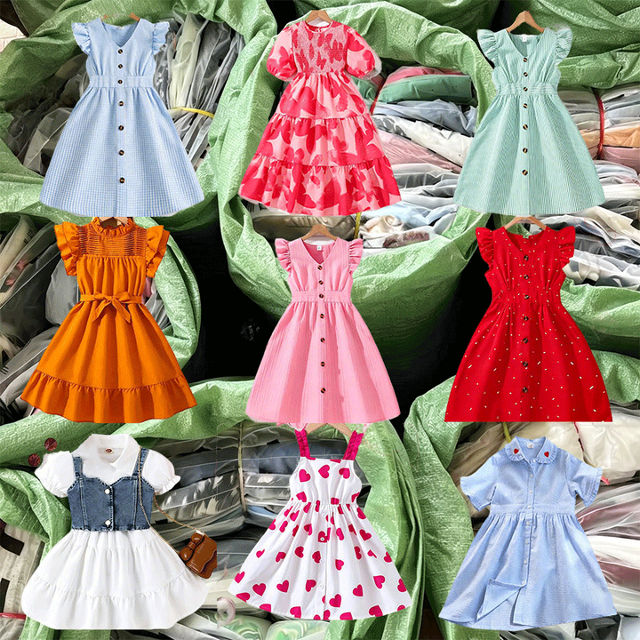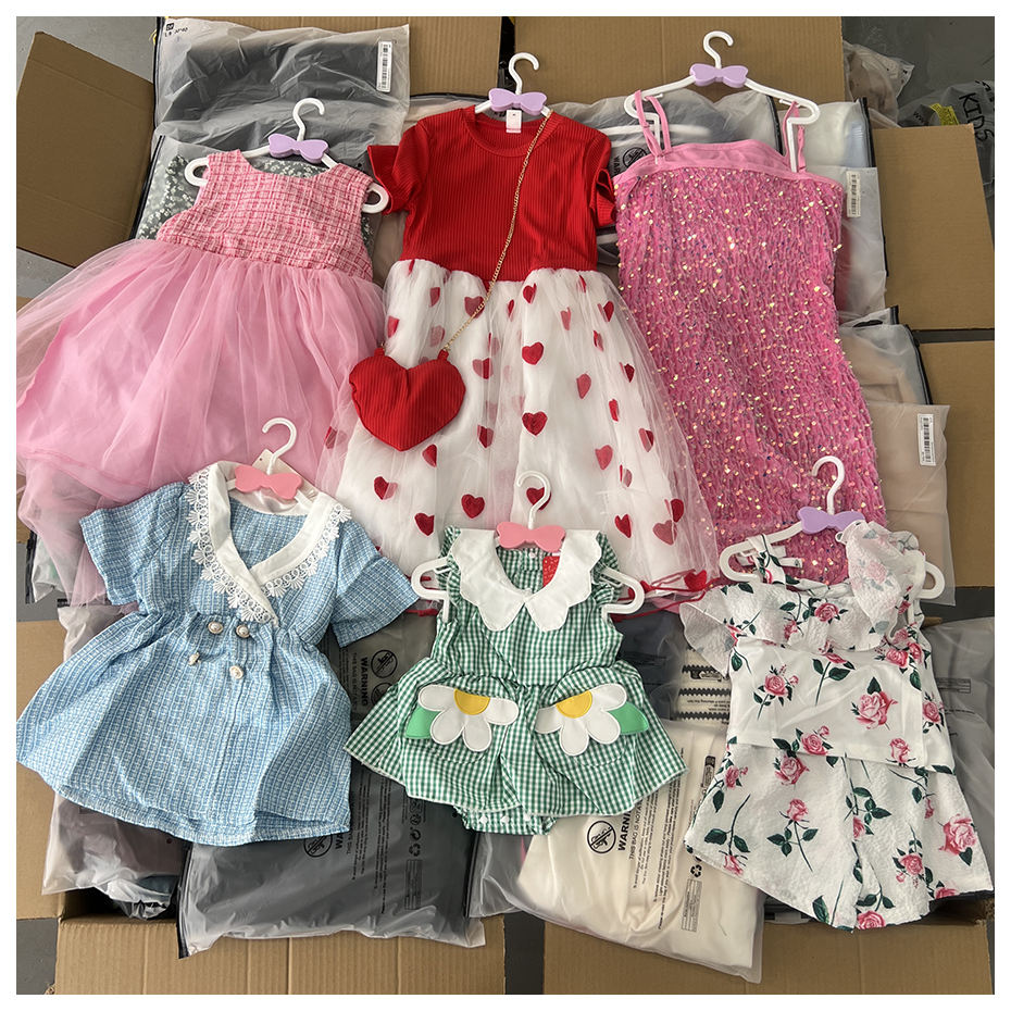 สินค้าใหม่ยกกระสอบ ขายส่งจำนวนมาก ชุดเดรสเด็ก เสื้อผ้าเด็กมือสอง ฤดูร้อน Ropa De Bebe จัดส่งแบบสุ่ม ชุดเดรสเด็กผู้หญิง