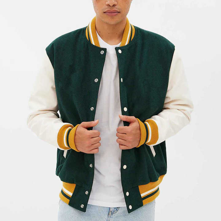 เสื้อแจ็กเก็ตเบสบอลผ้ากำมะหยี่ปักลายตัวอักษร chenille ดีไซน์แฟชั่นใหม่ล่าสุดผ้าขนแกะแขนหนังแท้ผ้าขนแกะใส่ไปวิทยาลัย