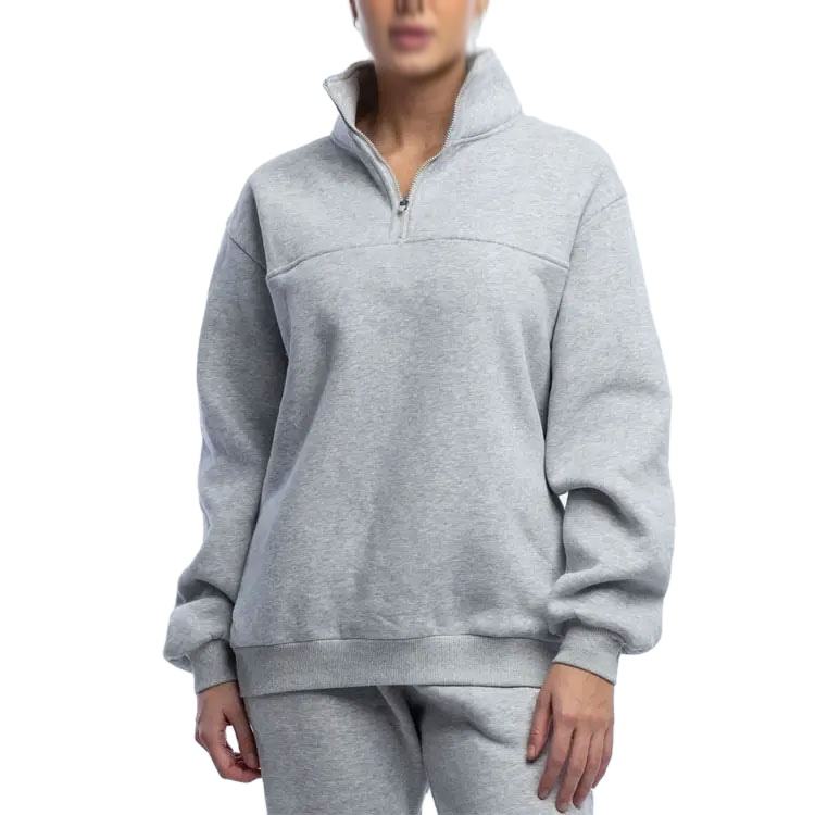 เสื้อฮู้ดดี้ผ้าฝ้ายเรียบแบบใหม่ล่าสุด สกรีนโลโก้ตามสั่ง ทรงโอเวอร์ไซส์ สำหรับผู้หญิง แบบซิป 14 เสื้อฮู้ดดี้ผู้หญิง