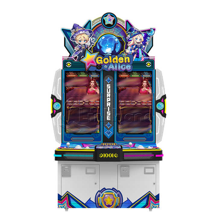 เครื่องเกมอาร์เคดแบบหยอดเหรียญจอคู่รุ่นใหม่ล่าสุด ขนาด 32 นิ้ว โกลเด้นอลิซ เวอร์ชั่นล่าสุด เกมเล่นหลายคน เกสต์ลัคกี้ 7 เกมฝึกทักษะ