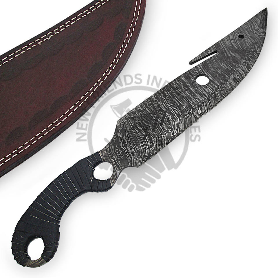 มีดล่าสัตว์กลางแจ้งรุ่นใหม่ล่าสุด ด้ามจับหุ้มหนัง ใบมีดเหล็กดามัสกัสแบบเต็มตัน คมกริบ ด้ามจับหุ้มเชือกหนัง มีดเอาตัวรอดที่ดีที่สุด