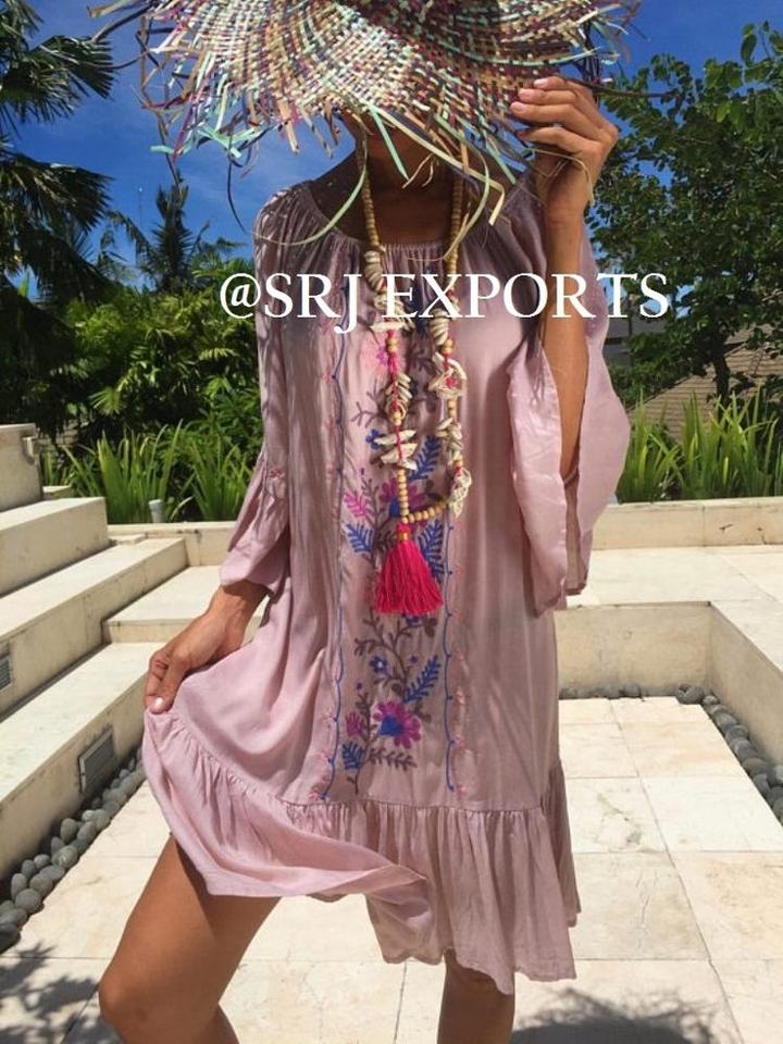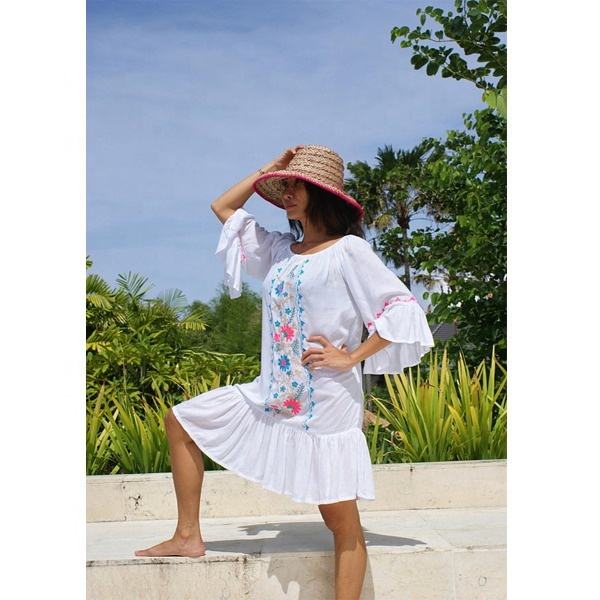 มินิเดรสแนวยิปซีโบฮีเมียนของใหม่,เดรสมินิเดรสโบฮีเมียนปักลายมีระบายรอบไหล่
