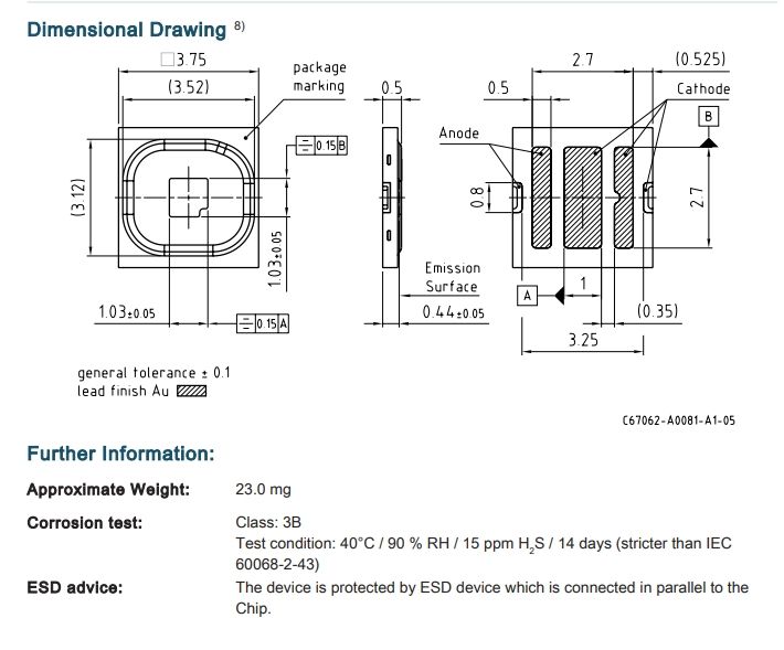 LED Size:0.148" L x 0.148" W (3.75mm x 3.75mm)