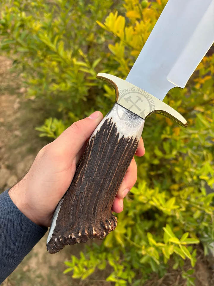 มีดล่าสัตว์เหล็ก J2 ทำมือใหม่เอี่ยม พร้อมด้ามเขาสัตว์ มีดโบวี่สะสมสำหรับเอาตัวรอด คมกริบ ด้ามจับแน่น มีดใบตายคมที่ดีที่สุด