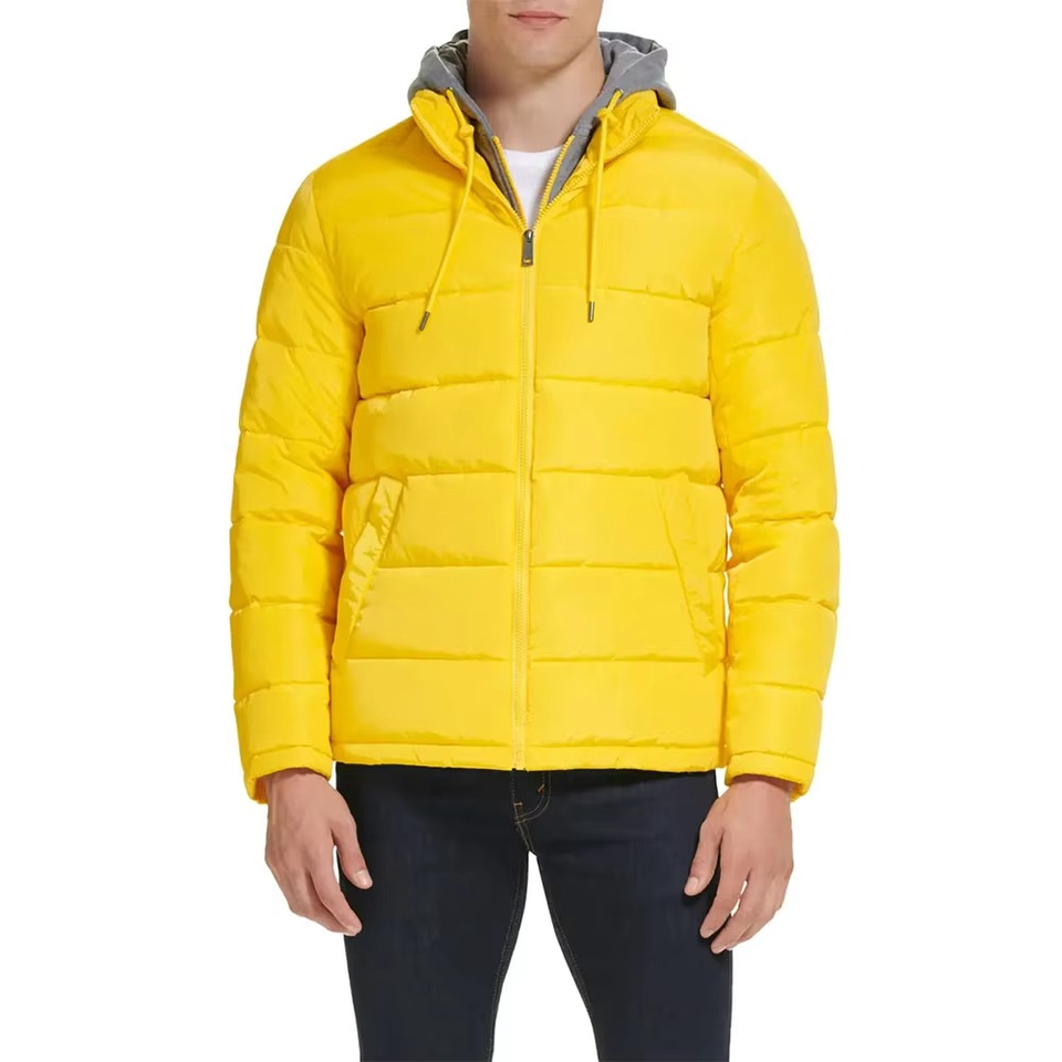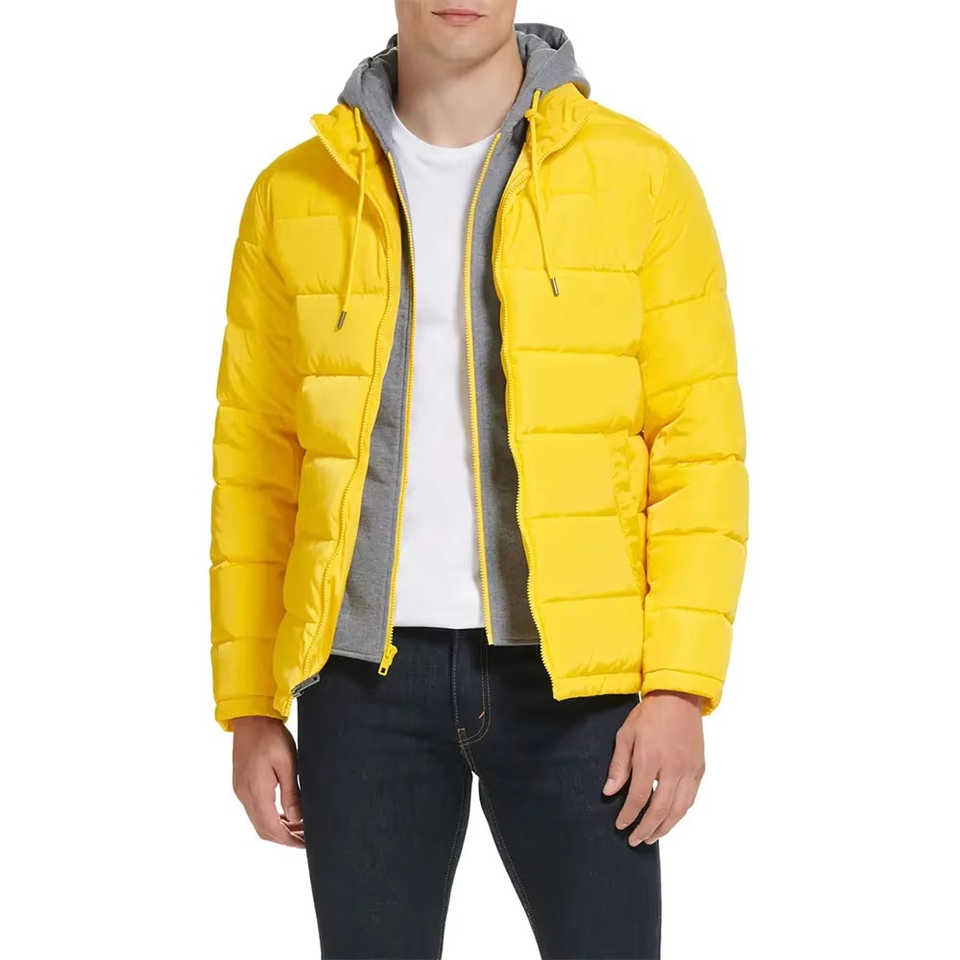 แจ็คเก็ตพัฟเฟอร์แบบมีฮู้ดสำหรับผู้ชาย ฤดูหนาว คุณภาพสูง ผลิตตามสั่ง ใหม่เอี่ยม พร้อมโลโก้ด้านหน้า น้ำหนักเบา มีซิป