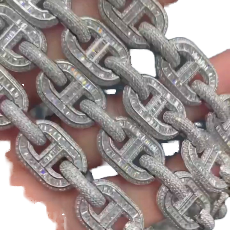 สร้อยคอเพชรโมอิส925ใหม่ล่าสุดทำจากเงินสเตอลิงฮิปฮอปขนาด22มม. คุณภาพสูง