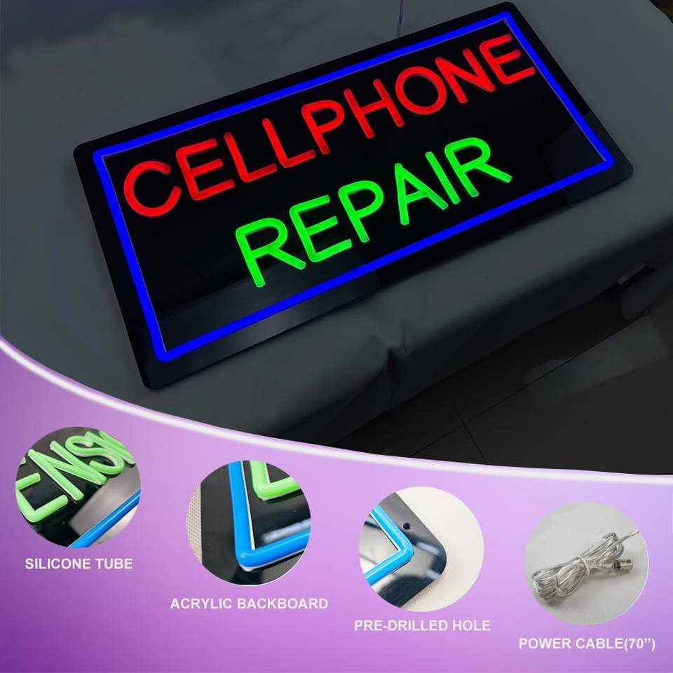 ป้ายสัญลักษณ์บาร์ LED แบบใหม่24ชั่วโมงสำหรับร้านซ่อมโทรศัพท์มือถือไฟนีออนโลโก้