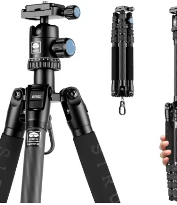 ขาตั้งกล้องพกพาแบบพับได้ 5C คุณภาพสูง น้ำหนักเบา ขนาด 54.3 นิ้ว ผลิตจากคาร์บอนไฟเบอร์ สำหรับการเดินทาง