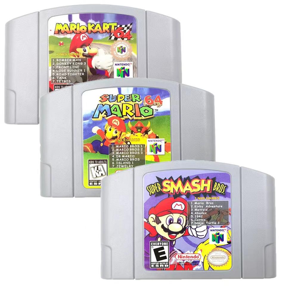 ตลับเกมวิดีโอ Mario 64+7in1 ใหม่เอี่ยมสำหรับเครื่อง N64 พร้อม Mario Kart 64 และ Super Smash Bros-7 วัสดุพลาสติก