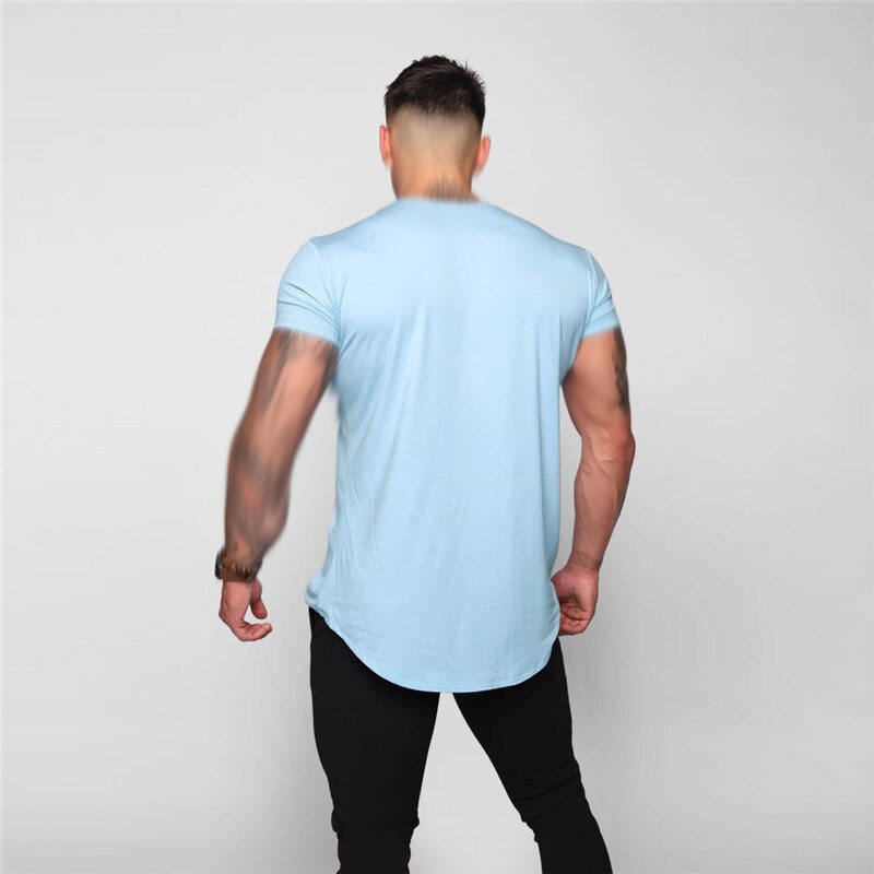 เสื้อยืดกีฬาแขนสั้นผู้ชายแบบใหม่ แห้งเร็ว ระบายอากาศดี ไม่เป็นขุย ผ้าฝ้าย 100% สำหรับวิ่ง ฟิตเนส และการฝึกซ้อม
