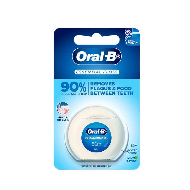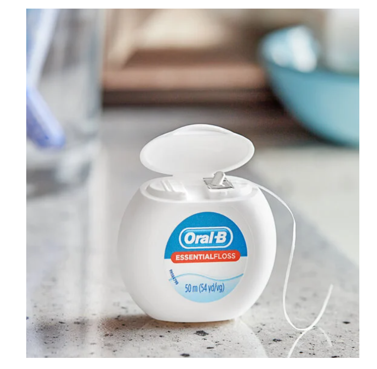 ไหมขัดฟัน Oral B Essential Floss แบบใหม่เอี่ยม ยาว 50 เมตร ไหมขัดฟันเคลือบแว็กซ์ พร้อมอุปกรณ์ฟอกสีฟัน ราคาขายส่งถูกพิเศษ