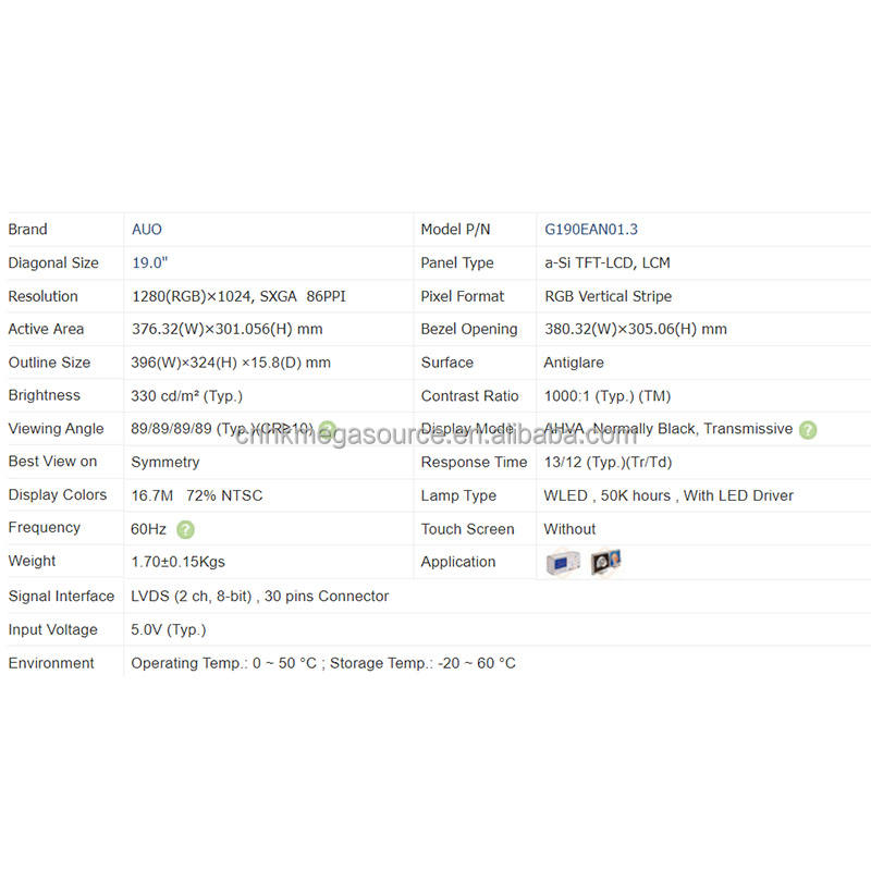 型号: G190EAN01.3 จี190อีเอเอ็น01.3
