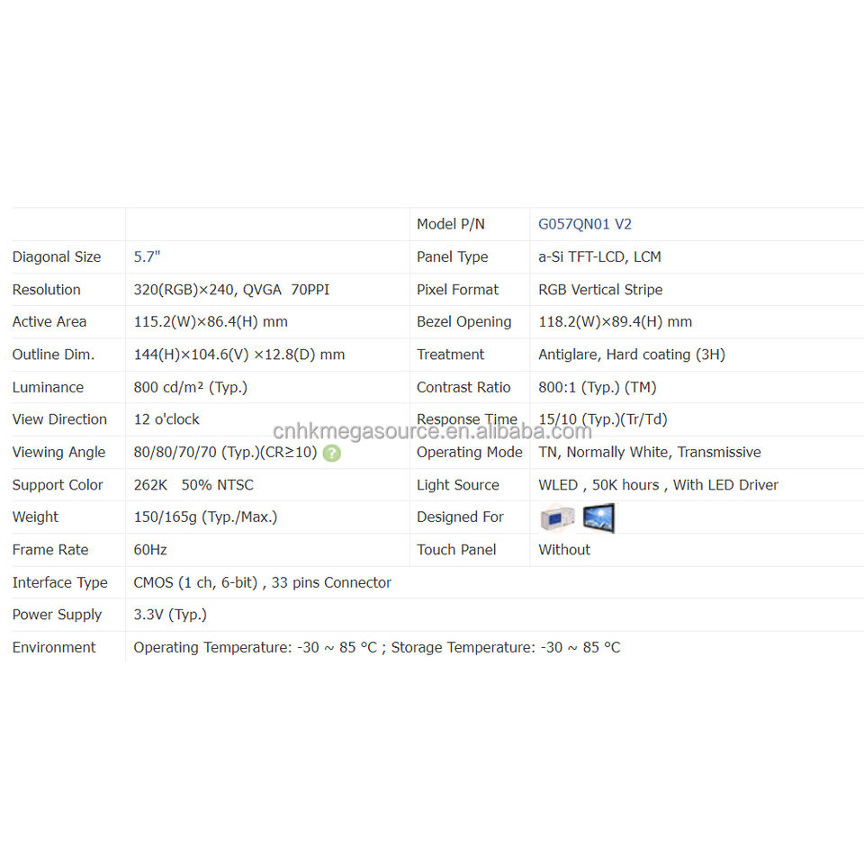 จอแสดงผล LCD รุ่น G057QN01 V2 ขนาด 5.7 นิ้ว ความละเอียด 320*240 ของแท้ใหม่แกะกล่อง