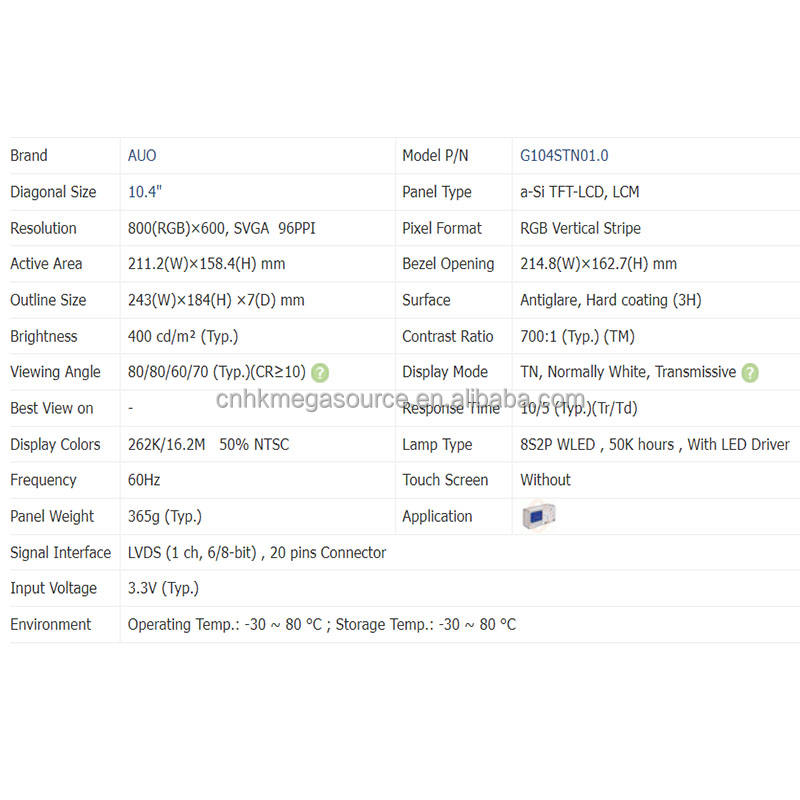Model:G104STN01.0