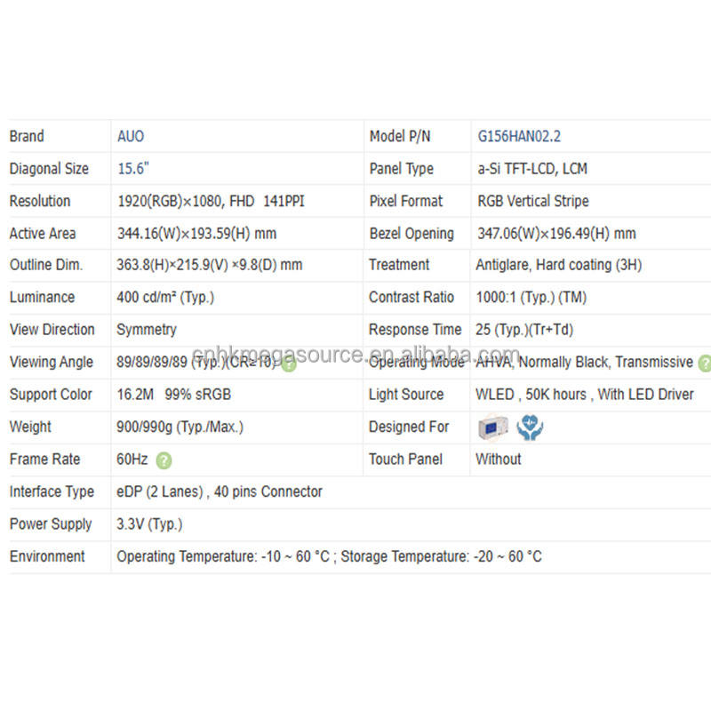 型号: G156HAN02.2 จี156เอชเอเอ็น02.2