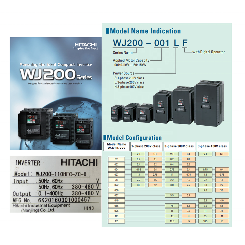 ฮิตาชิ WJ200-110HFC อินเวอร์เตอร์ไดรฟ์ 11kW สำหรับระบบทำความเย็นและผลิตไฟฟ้าพลังงานแสงอาทิตย์, ตัวแปลงความถี่ทดแทนของแท้