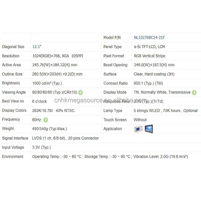 หน้าจอใหม่แกะกล่องแท้รุ่น NL10276BC24-21F ขนาด 12.1 นิ้ว ความละเอียด 1024*768 จอแอลซีดี NL10276BC24-21F