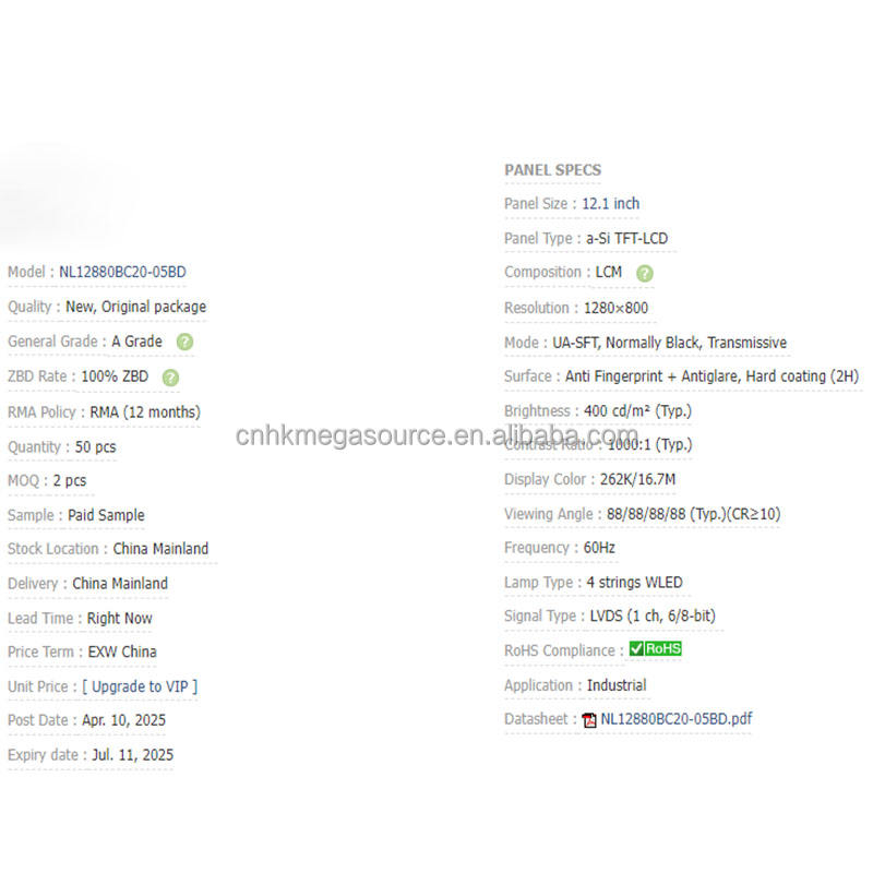 หน้าจอใหม่แกะกล่องแท้ NL12880BC20-05BD ขนาด 12.1 นิ้ว ความละเอียด 1280*800 จอ LCD NL12880BC20-05BD