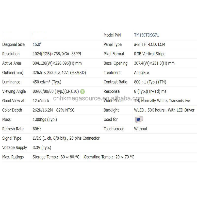 หน้าจอ TM150TDSG71 ของแท้ใหม่เอี่ยม ขนาด 15 นิ้ว ความละเอียด 1024*768 จอ LCD TM150TDSG71 แผงจอ LCD