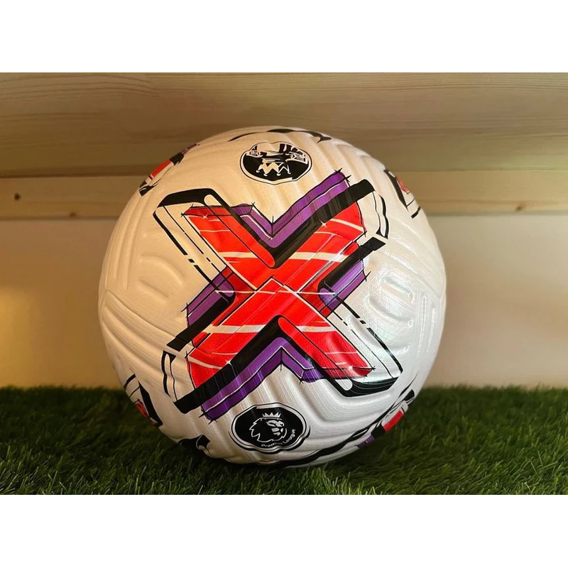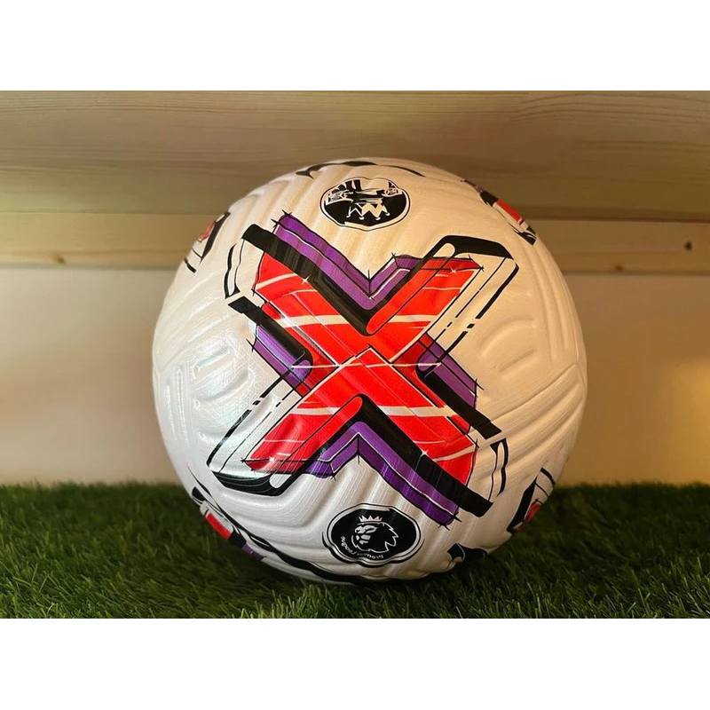 ลูกฟุตบอลมาตรฐาน ผลิตจากวัสดุ PU ใหม่เอี่ยม น้ำหนัก 420 กรัม ไร้รอยต่อ ผลิตด้วยเทคนิคการเชื่อมด้วยความร้อน เหมาะสำหรับการแข่งขันในลีก