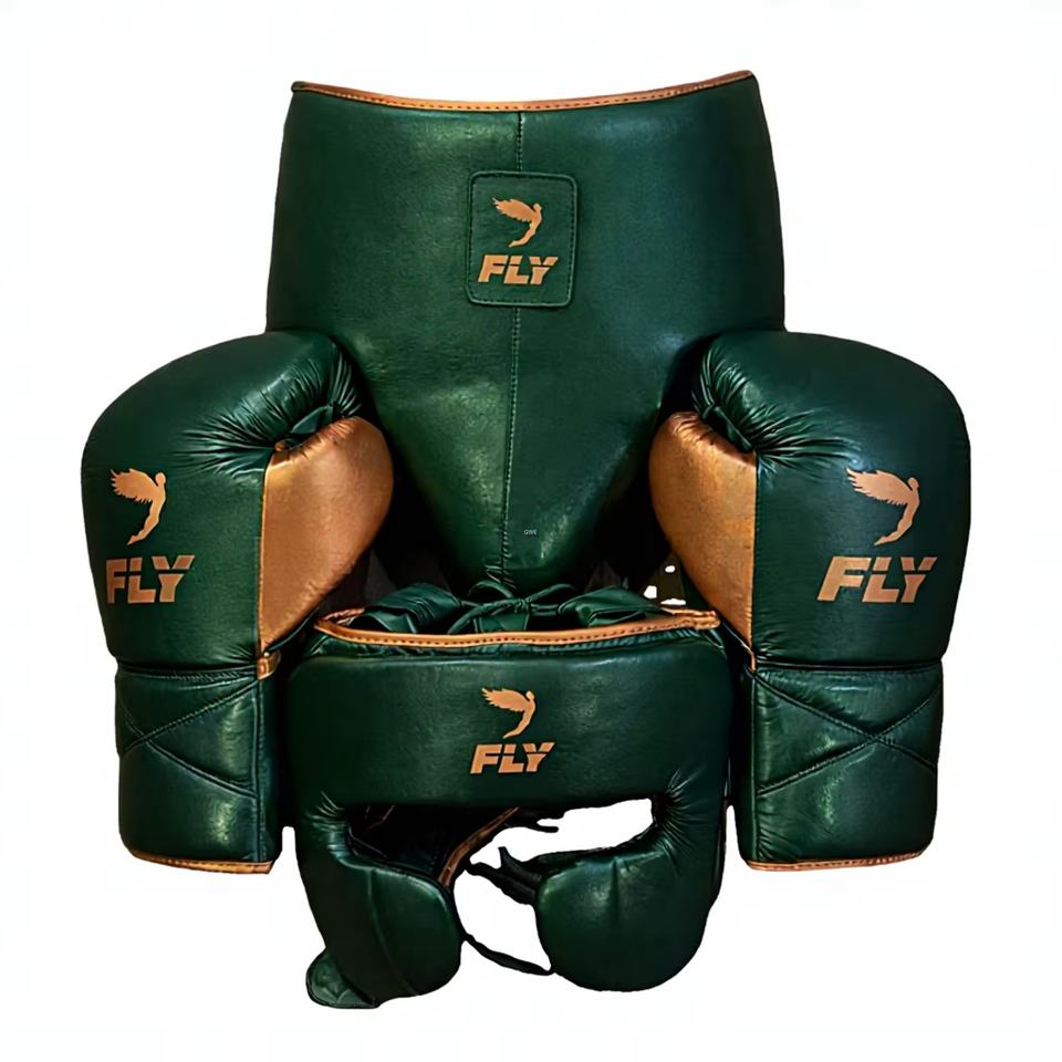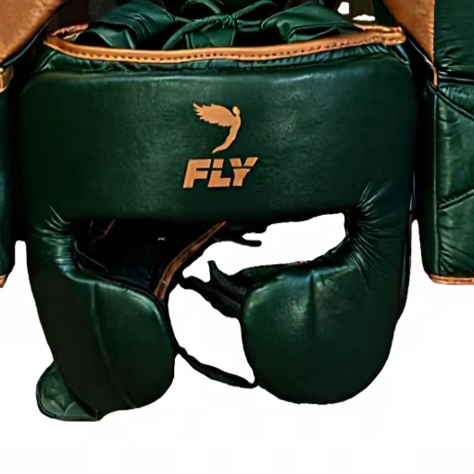 ชุดอุปกรณ์ป้องกันศีรษะและอวัยวะเพศชายสำหรับชกมวย หนังแท้ คุณภาพระดับมืออาชีพ สีเขียวทอง ระบายอากาศได้ดี ทนทาน ใหม่เอี่ยม