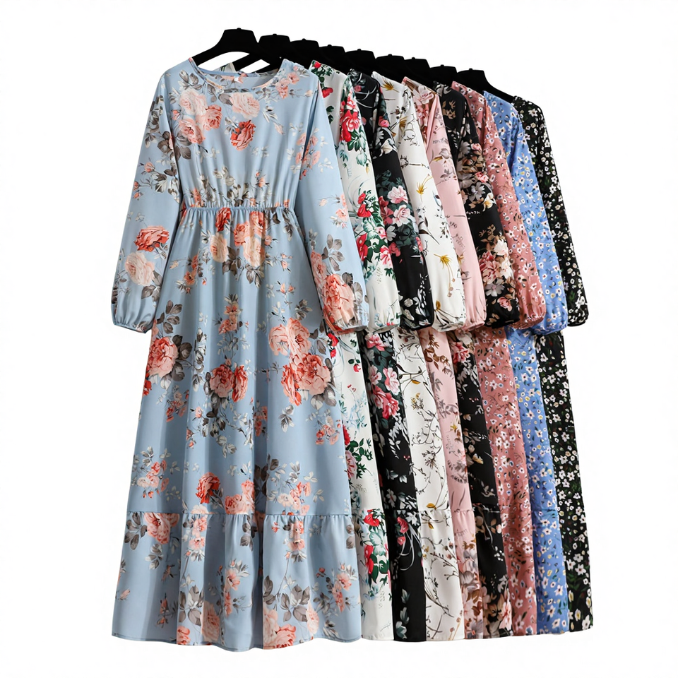ชุดเดรสฤดูร้อนโพลีเอสเตอร์สำหรับผู้หญิง Rwk แบบใหม่เอี่ยม หลายสไตล์ ขายส่งยกกระสอบ โรงงานกวางตุ้ง