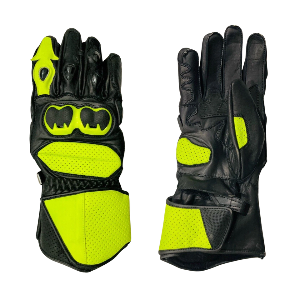 ถุงมือแข่งรถหุ้มเกราะสำหรับผู้ชายใหม่ล่าสุดมีลายพิมพ์หนังสีเหลือง/ดำระบายอากาศได้สำหรับรถยนต์/ติดตาม/แข่งรถจักรยานยนต์