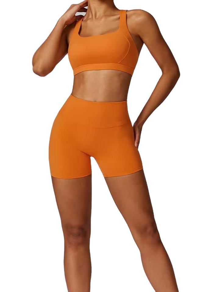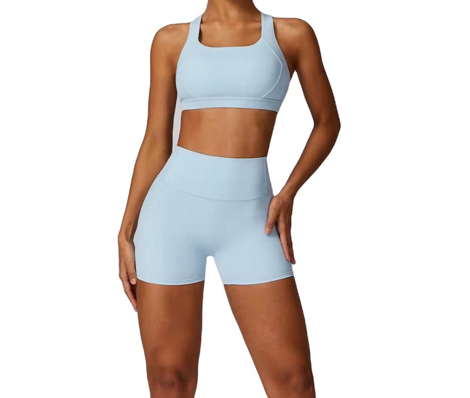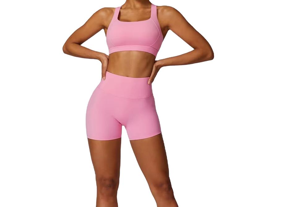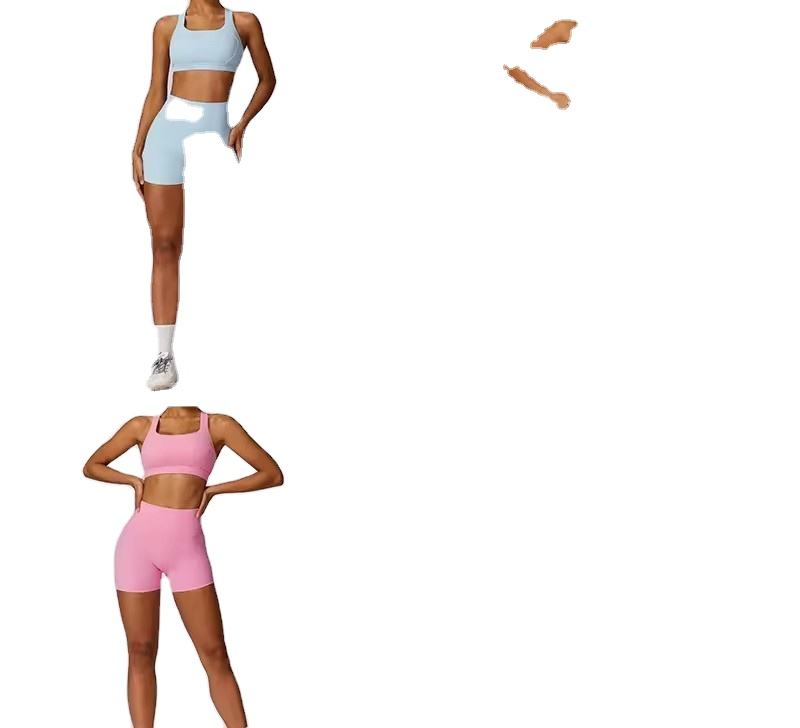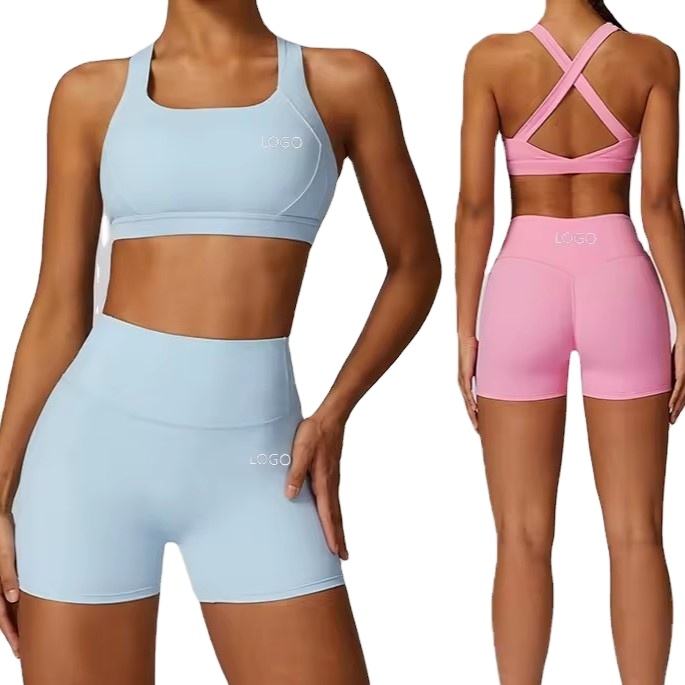 ชุดเซต2ชิ้นสำหรับผู้หญิงชุดเล่นกีฬาแบบไขว้หลังชุดเล่นโยคะฟิตเนส