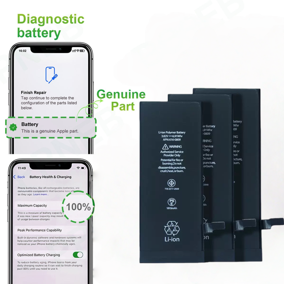 แบตเตอรี่ลิเธียมโพลิเมอร์แบบชาร์จใหม่ได้ XYN OEM ของแท้ สำหรับ 6/6s/7/7P/8/8P ความจุ 1775mAh พร้อมระบบป้องกันแบบ Dual IC มีสินค้าในสต็อก