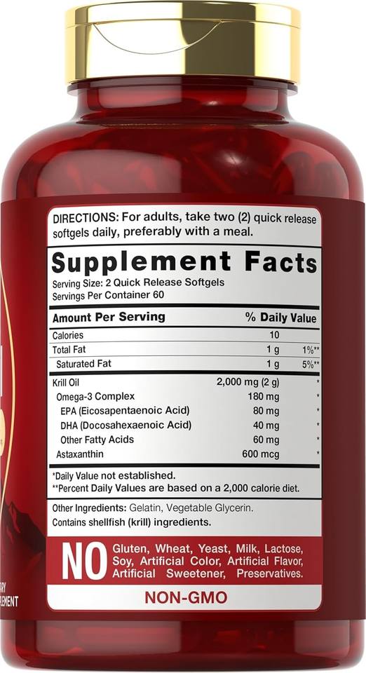 น้ำมันคริลล์แอนตาร์กติกสูตรใหม่ 2000 มก. 120 ซอฟต์เจล | โอเมก้า-3 อีพีเอ, ดีเอชเอ, พร้อมแอสตาแซนธิน