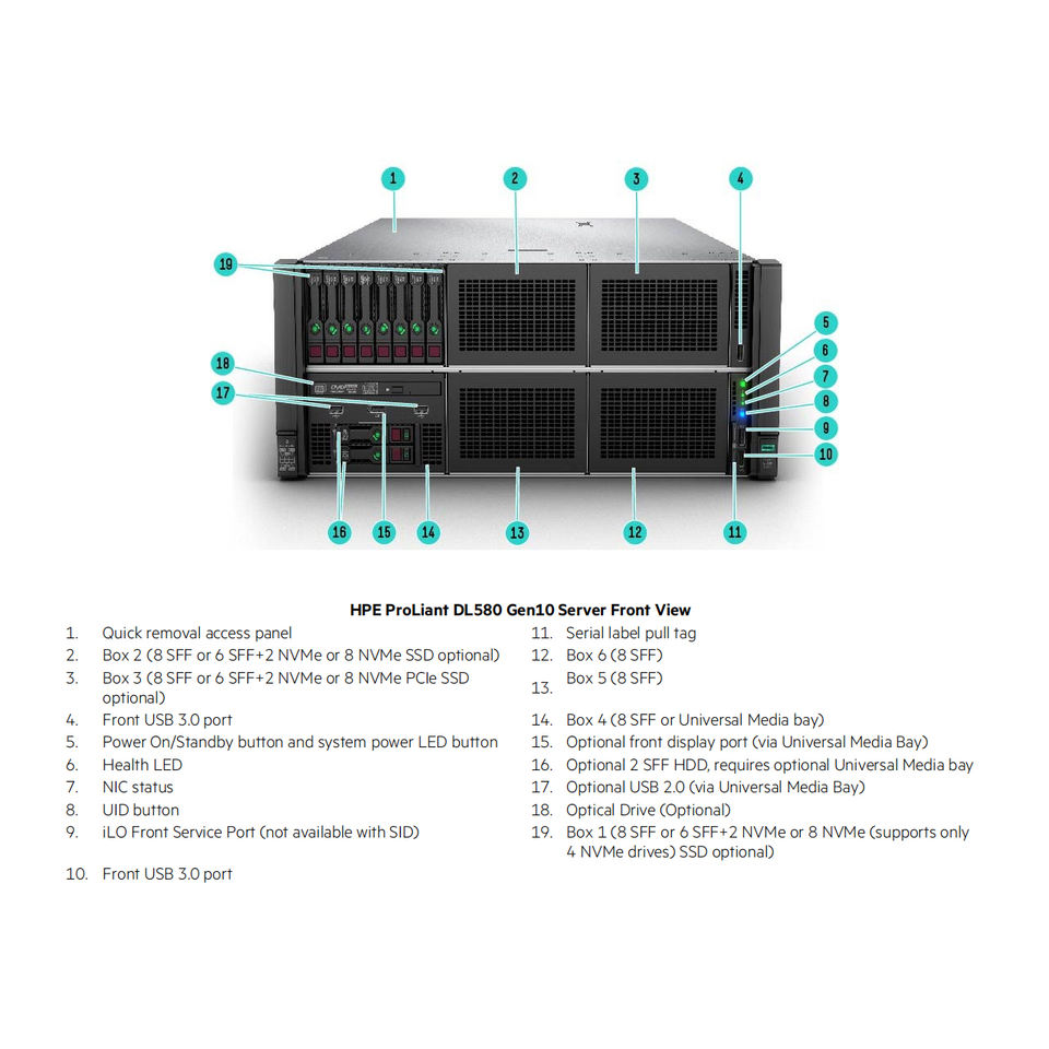 HPE ProLiant Gen10 DL580 4U 4P แร็คเซิร์ฟเวอร์: 2ND GEN Intel Xeon DDR4 48SFF/20NVMe for Mission Critical