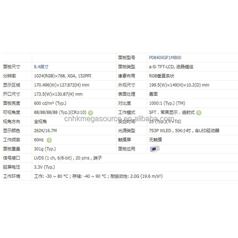 หน้าจอ LCD รุ่น P0840XGF1MB00 ขนาด 8.4 นิ้ว ความละเอียด 1024*768 ของแท้จากโรงงาน แผงจอ LCD ทางการแพทย์ โมดูล LCD