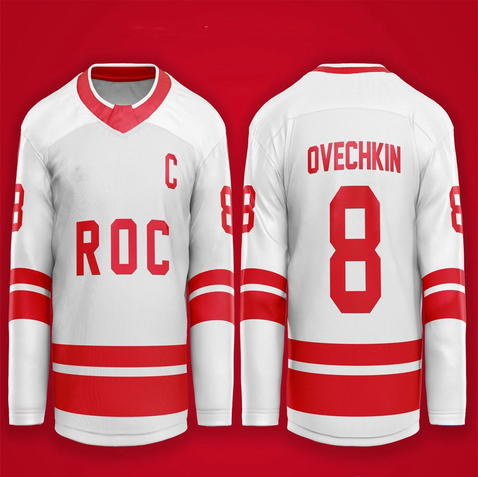 เสื้อเจอร์ซีย์เล่นฮ็อกกี้น้ำแข็งสไตล์วินเทจผ้าเจอร์ซี่พิมพ์ซับลิเมชันตามสั่ง