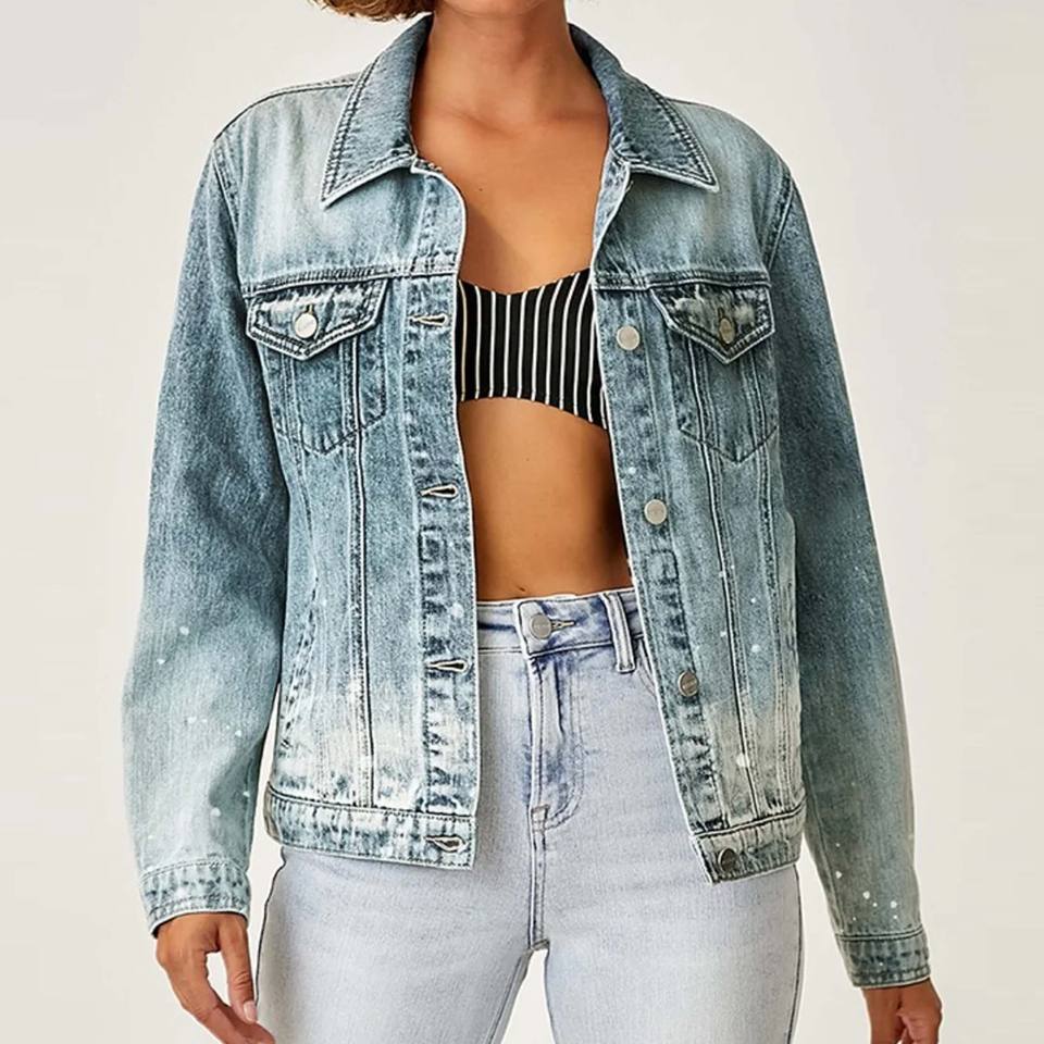 แจ็กเก็ตยีนส์แบบสั้นแขนยาวติดกระดุมเสื้อแจ็คเก็ตยีนส์มีกระเป๋าสำหรับผู้หญิงเสื้อนอกแฟชั่นดีไซน์ล่าสุดมีแบรนด์