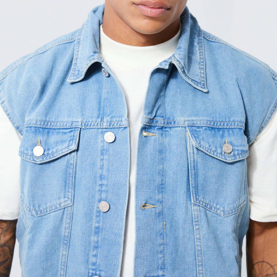 เสื้อแขนกุดระบายอากาศได้ดีมีแบรนด์สำหรับผู้ชายเสื้อแจ็กเก็ตผ้าเดนิมอบอุ่นแขนกุดผ้าไนลอนสำหรับฤดูหนาว