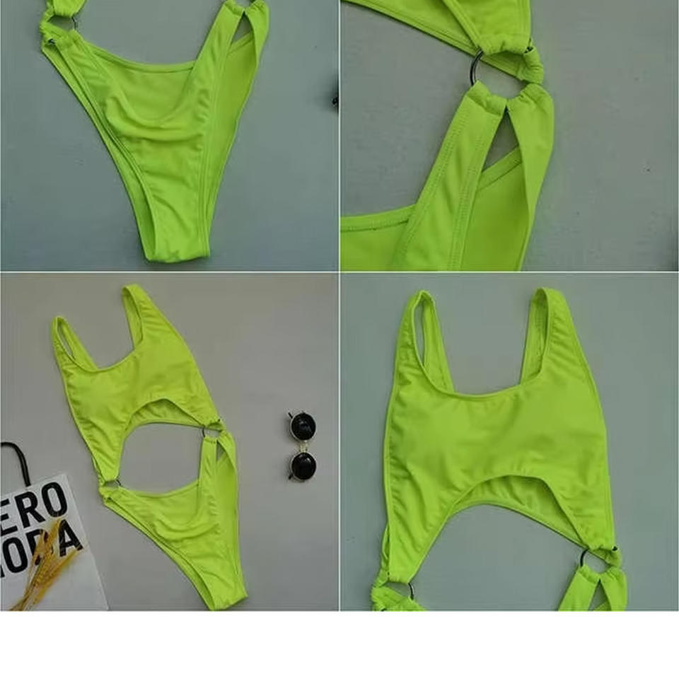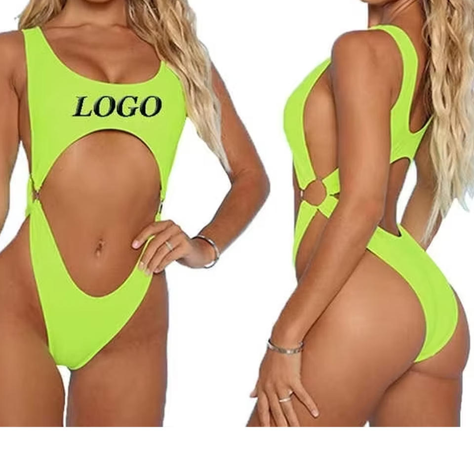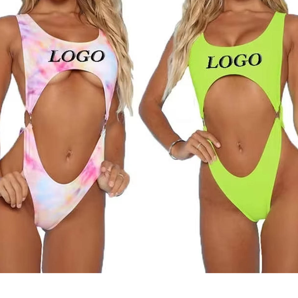 ชุดบิกินี่พิมพ์ลายมัดย้อมติดแบรนด์เสื้อผ้าผู้หญิงชุดว่ายน้ำแฟชั่นเอวสูงสีเขียวนีออนชุดว่ายน้ำชิ้นเดียวสวมใส่สบาย