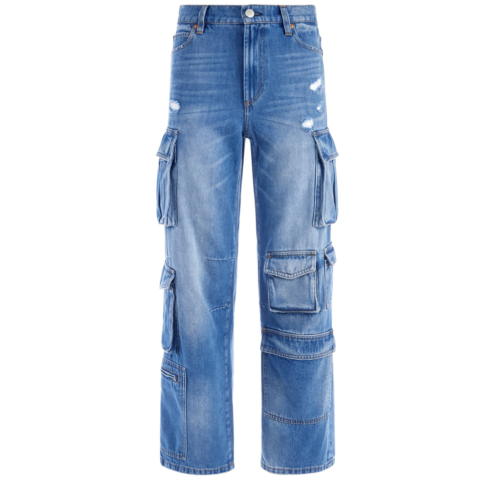Branded Women Denim Jeans Custom Logo High Quality Washed Straight Loose Cargo Plus Size Women's Jeans for Girls