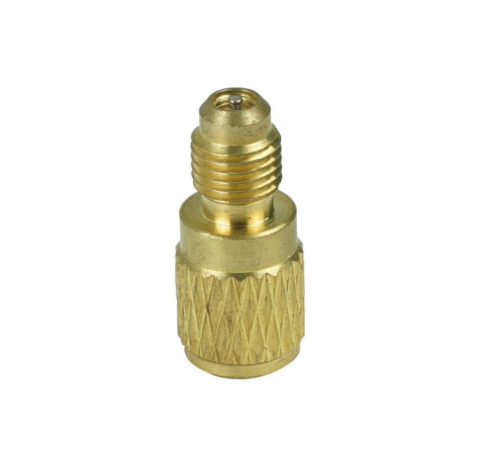 อะแดปเตอร์ทองเหลือง 1/4 SAE ตัวผู้ ถึง 5/16 SAE ตัวเมีย สำหรับเครื่องมือแอร์รถยนต์ (ภาษาอังกฤษ)