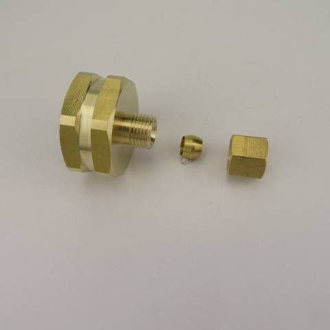 อะแดปเตอร์ทองเหลืองพร้อมเกลียวในขนาด 3/4 นิ้ว เป็นแบบอัดขนาด 1/4 นิ้ว สำหรับท่อสวนขนาด 3/4 นิ้ว