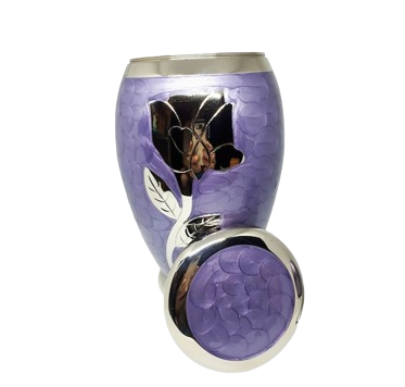 โกศบรรจุอัฐิสำหรับผู้ใหญ่ ทำจากทองเหลือง สีลาเวนเดอร์ พร้อมกุหลาบเงิน โกศอะลูมิเนียมสำหรับบรรจุอัฐิมนุษย์