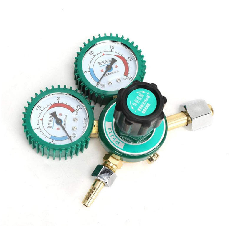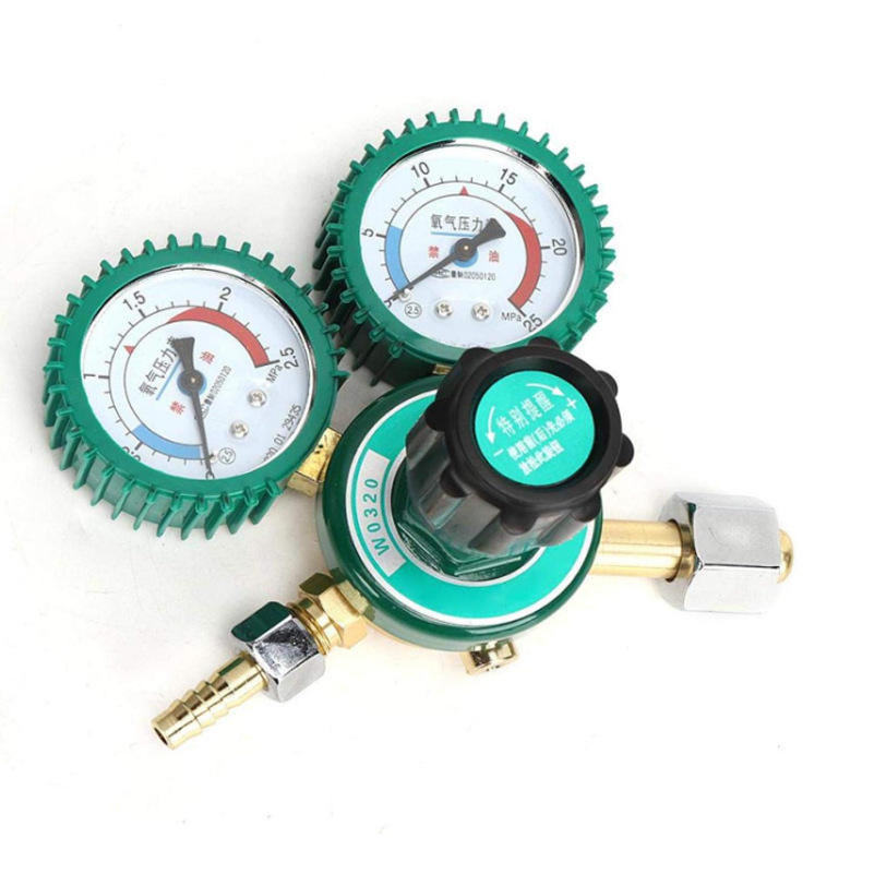 เกจวัดแรงดันออกซิเจนทองเหลืองและอะลูมิเนียม พร้อมตัวควบคุมการไหลของ CO2 และโครงสร้างสำหรับลดแรงดัน