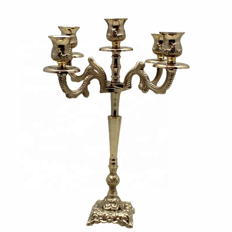 ทองเหลืองอลูมิเนียม 5 แขนเชิงเทียน F354 ทองเหลือง EPL สีทอง Handmade บ้านและงานแต่งงานตกแต่งโต๊ะ