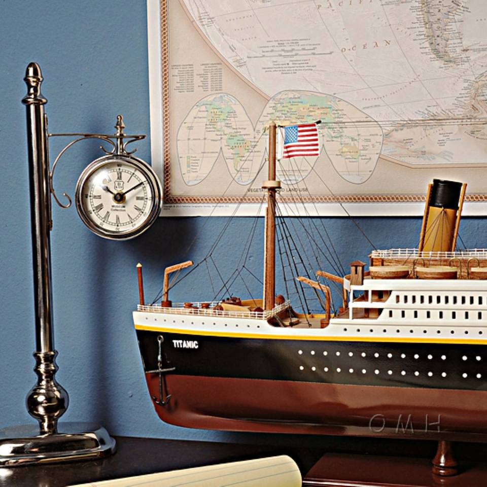 นาฬิกาตั้งโต๊ะอะลูมิเนียม ดีไซน์ชายฝั่ง ตกแต่งด้านเดียว น้ำหนักเบา สไตล์วินเทจ งานฝีมือ รุ่น AK001